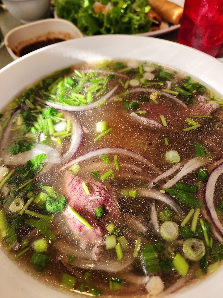 The menu leans heavily into traditional Vietnamese comfort food, with pho taking center stage, as it should. The broth is where most pho restaurants either shine or fall flat, and here it’s clear time and technique matter. Long-simmered beef bones, toasted spices like star anise and cinnamon, and careful skimming create a broth that’s clear yet deeply savory. According to culinary research published by institutions like the Culinary Institute of America, extended simmering extracts collagen and amino acids that contribute to both flavor and mouthfeel, and you can taste that effort in every spoonful.